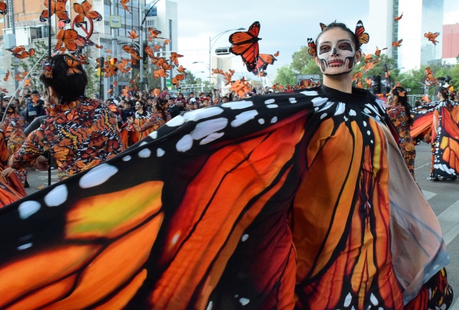 Mujer vestida de mariposa monarca desfila el Día de Muertos. / #mariposa #monarca #alas #cdmx