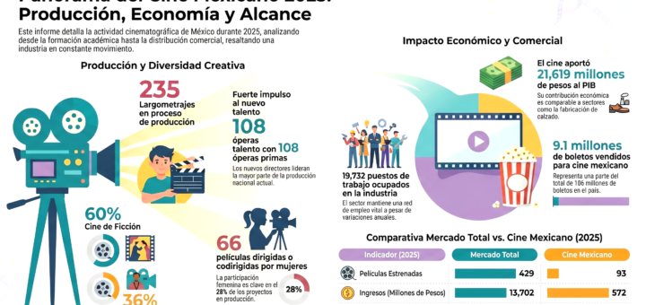 La industria del cine en México continúa consolidándose como un motor cultural y económico clave. En 2025, generó más de 13,700 millones de pesos en taquilla y convocó a 186 millones de espectadores, reflejando el interés constante del público por la experiencia cinematográfica.