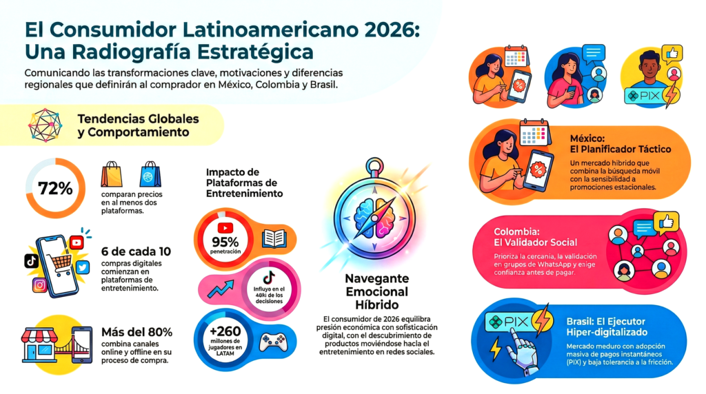 Finalmente, para el consumidor latinoamericano de 2026, las plataformas de entretenimiento son los nuevos centros comerciales digitales. Las marcas que logran éxito son aquellas que entregan lo que el usuario necesita, pero disfrazado de lo que el usuario quiere: entretenimiento. Aquellas que no logren ser protagonistas relevantes en estos espacios voluntarios de consumo emocional perderán la oportunidad de conquistar el «wallet» digital del comprador.