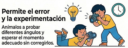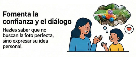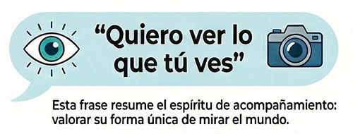 En este proceso, el papel de madres, padres y tutores es fundamental, pero no desde la dirección, sino desde el acompañamiento. Acompañar no es decirles qué fotografiar ni cómo hacerlo, sino estar presentes para escuchar, conversar, cuidar y animar.