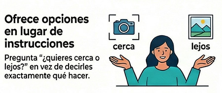 3. Ofrece opciones, no instrucciones