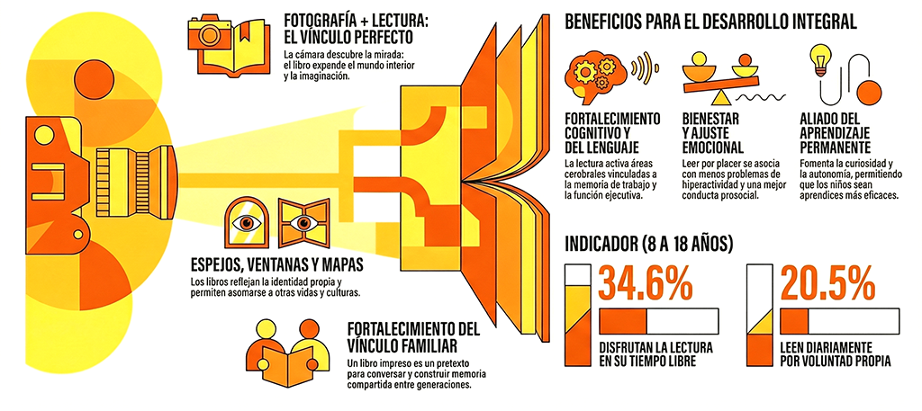 La fotografía invita a detenerse y mirar. La lectura invita a profundizar en esa mirada. Juntas ayudan a que niñas y niños descubran que su voz importa, que su forma de ver el mundo tiene valor y que aquello que viven cotidianamente —sus mascotas, las personas que quieren, los lugares que recorren, la comida que disfrutan o los pasatiempos que los emocionan— también puede convertirse en una expresión creativa con sentido.